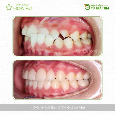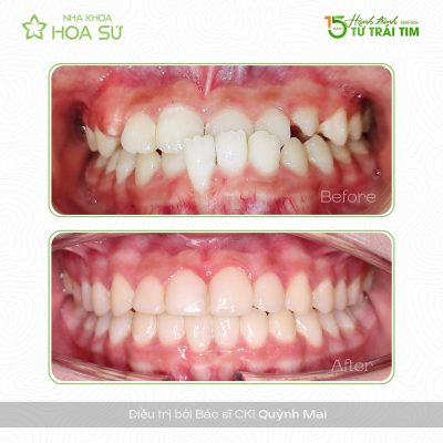 Sau hơn 2,5 năm niềng răng với mắc cài kim loại tự động tình trạng răng của H.Thanh đã có rất nhiều thay đổi đáng kể: