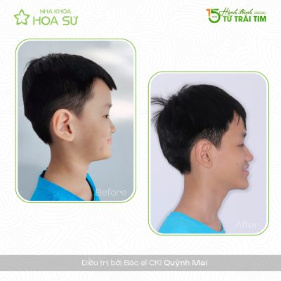 H.Thanh được ba mẹ đưa đến Nha Khoa Hoa Sứ thăm khám và niềng răng từ khi 11 tuổi với tình trạng móm, cắn chéo, răng cửa trên cụp vào trong, răng cửa dưới nghiêng ra ngoài, gây tiêu xương lung lay và tụt nướu. Nếu để tình trạng này kéo dài sẽ dẫn đến phát triển lệch lạc về xương hàm khi bé lớn lên.